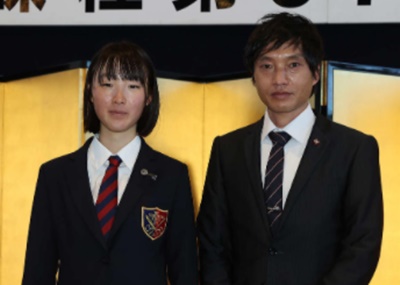 ▼競馬学校を卒業した永島まなみさんと父永島太郎さん