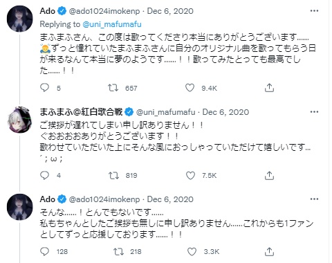 その後もまふまふさんとAdoさんとのやり取り続きます。